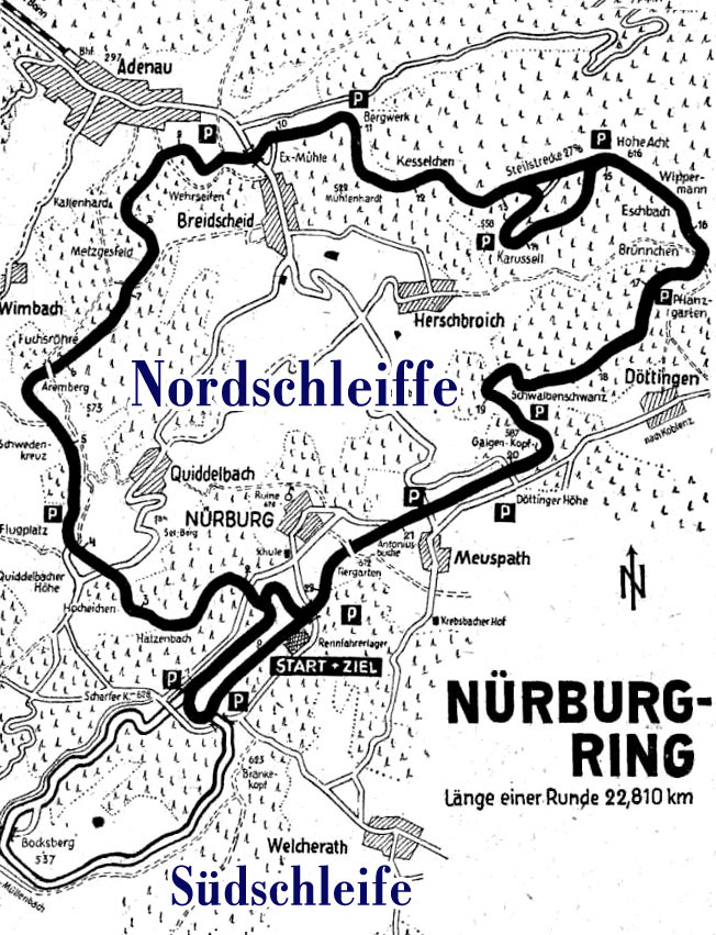 (22.8 kms), the Südschleife (7.7 kms), and the Betonschleife