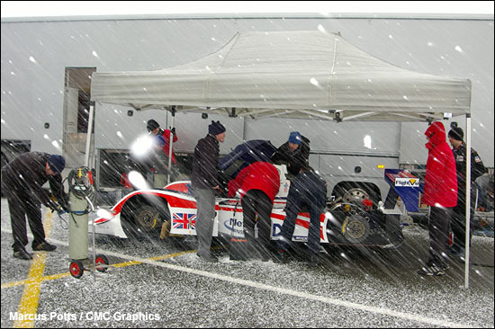 and snowswept South Circuit at Silverstone in Northamptonshire.