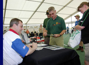across the finishing line at Le Mans, was on hand to sign