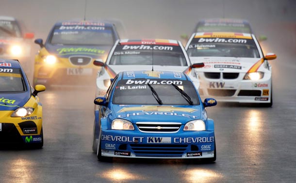 driver, Nicola Larini joined his team mates as a WTCC podium
